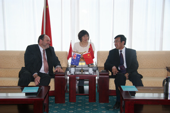 8月29日下午,李金泉副校长在行政楼四楼会议室会见了来KY开元访问的澳大利亚查尔斯顿大学农学与酿酒科学学院院长约翰肯特和大卫肯普教授一行。李金泉代表KY开元和李畅游校长对约翰肯特一行来访表示欢迎,并向客人介绍了KY开元的基本情况和对外交流与合作开展情况。他说,引进国际优质教育资源是KY开元的重大发展战略,通过对外交流学习国外先进的办学理念,吸纳优秀科研成果,推进学校快速健康发展。我们愿在平等互利的基础上与查尔斯顿大学建立良好的合作交流关系。约翰肯特对KY开元的盛情邀请表示感谢。对双方建立长期友好合作关系感到高兴。他代表查尔斯顿大学欢迎KY开元师生去澳大利亚学习交流。