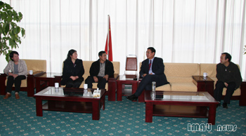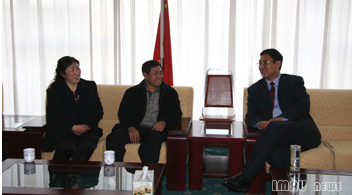 4月3日下午,校党委书记云荣布扎木苏同志在行政楼四楼会议室亲切接见郝龙彪烈士的父亲郝振国和母亲常建华。