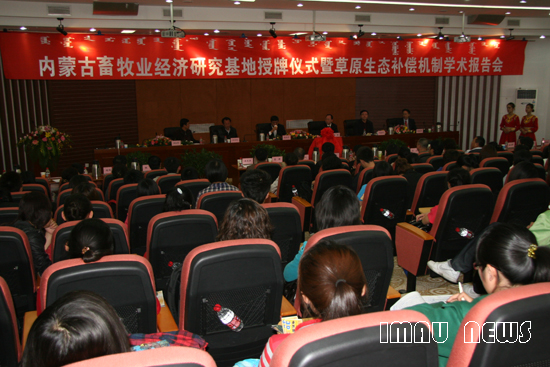 内蒙古畜牧业经济研究基地主任、经济管理学院副院长乔光华教授就研究基地的建设情况做了汇报。他说,内蒙古畜牧经济研究基地是自治区党委宣传部于2008年批准成立的7个自治区级哲学社会科学研究基地之一,基地的使命一是开展相关理论和政策研究,为学科建设服务,二是开展应用性对策研究,为自治区经济建设和社会发展服务。基地建设以来,依据自治区党委政府的要求,根据自治区党委宣传部批准的基地建设方案,参考区内外省区基地建设的经验,经过一年多的实践和总结,对基地建设的思路和办法做了进一步的完善和细化,明确了基地的研究方向和领域;建立了研究基地的组织机构,确定了研究团队;完善了基地的软硬件条件;支持了一批研究课题;完成了一批研究成果,其中基地重大项目“草原生态服务功能价值补偿模式研究”取得了阶段性成果。基地全体成员将继续努力,争取取得更大的成绩,为自治区畜牧业的发展、为自治区农村牧区的繁荣、稳定和农牧民的福祉作出新的贡献。