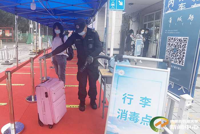 在校门口,返校学生在工作人员指引下,完成测温、消杀,出示青城码、核验身份、易班位置签到、领取核酸检测卡等一系列程序,顺利进入校园,并在宿舍区再次核验身份,经过核酸检测后方可登记入住。