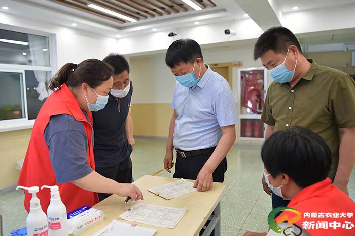 纪委书记哈斯巴根(右二)了解学生返校工作情况
