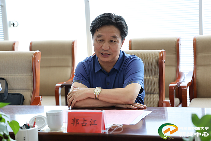 副校长塔娜主持调研座谈会,并介绍了学校的基本情况。郭占江说明了此次调研的目的,表达了合作期待。参会人员围绕乡村振兴、成果转化、科技创新、人才培养、继续教育培训等方面进行了深入交流,希望在原有的合作基础上进一步深度合作,整合碎片化合作,建立长效工作机制,强强联手,实现校企合作、校地合作、校校合作,达到双赢。
