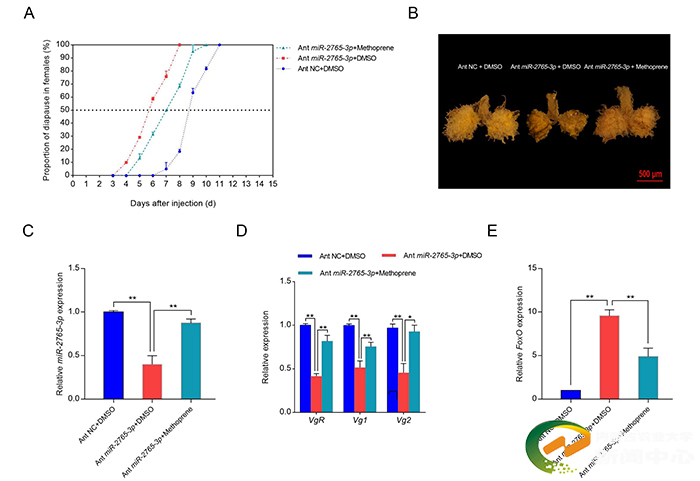 MicroRNA(miRNA)是一类长度为19~24nt的内源性单链非编码小RNA,广泛存在于各种生物体内,在转录后水平调控基因表达,在细胞分化、增殖、凋亡等多种生命活动中起着重要作用,已成为国内外研究热点。然而,miRNA在昆虫滞育过程中的调控作用却很少了解。本研究以内蒙古草原新害虫--沙葱萤叶甲为研究对象,采用生物信息学、表达谱分析和双荧光素酶实验相结合的方法,首次确定叉头转录因子FoxOmiR-2765-3p的靶基因。然后,应用基因克隆、基因沉默、miRNA过表达与敲减、药理学和形态解剖等方法,首次证实miR-2765-3p在昆虫滞育中起着重要的调控作用。