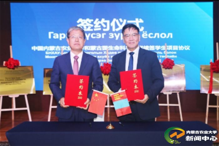 仪式上,高聚林代表学校与蒙古国生命科学大学续签了学生交流项目协议,并介绍了学校在中蒙合作中取得的成果及下一步工作计划。他表示,将继续深化与蒙古国生命大学在学生培养及科学研究方面的合作,进一步加强中蒙两国高校在农牧业种养殖、防沙治沙、生态保护等领域的联合人才培养、技术交流培训和科研等方面合作。