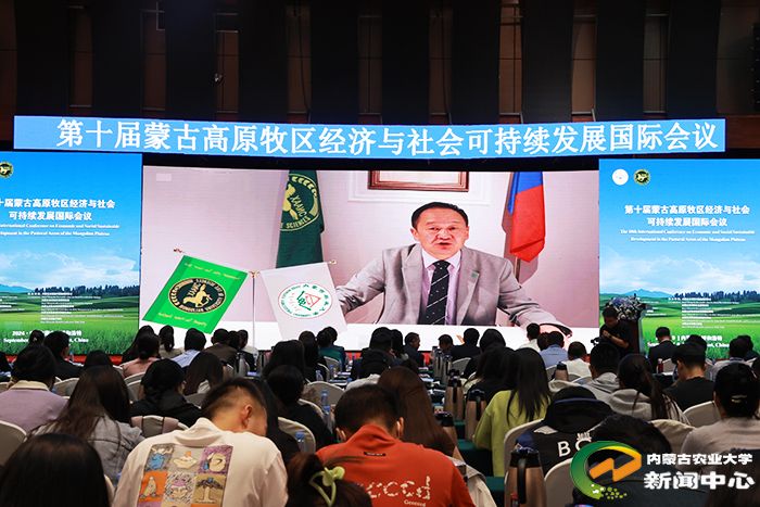 上午,会议正式拉开帷幕。校党委委员、副校长左合君致辞,高度评价本次会议对于促进中蒙两国在牧区经济与社会发展领域交流合作的重要意义,并对与会嘉宾热烈欢迎和诚挚感谢。随后,蒙古国生命科学大学Erdenechuluun.T Tsuga院长通过视频方式致辞,强调国际间合作对于推动蒙古高原地区可持续发展起到了不可或缺的作用,并预祝会议取得圆满成功。