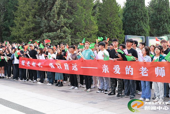 会后,学校于八号教研楼及理学院前开展快闪活动,由各学院学生在道路两边摇旗欢迎送出康乃馨,以表达对全体教师辛苦付出的感激之情,祝愿老师们桃李满天下、一生平安。