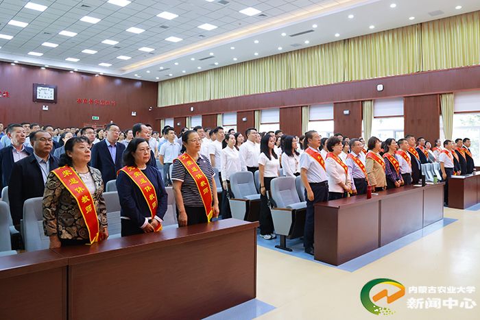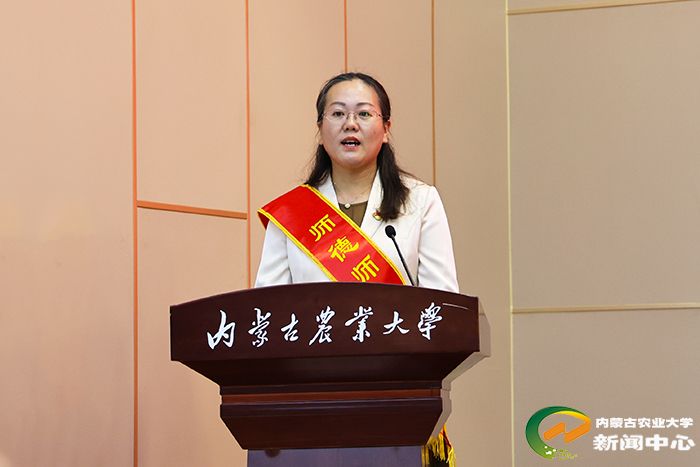 会上,年度突出贡献奖团队代表、乳业学院孙志宏,师德师风标兵代表、沙漠治理学院赵杏花,优秀教师代表、机电工程院金敏,荣休教师代表、草业学院王明玖,新进教师代表、动物科学学院阿拉腾珠拉先后发言。2024年新任职教师进行了集体宣誓。