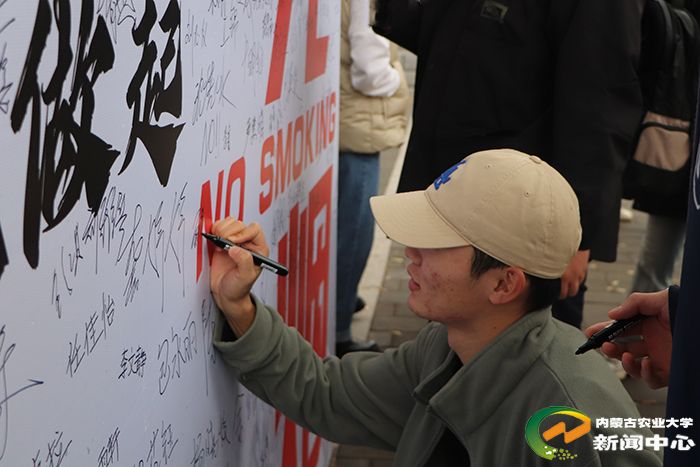 活动中,学生志愿者深入学生公寓发放禁烟宣传手册,图文并茂地向学生展示了吸烟对个人健康、家庭幸福及环境质量的严重影响,让学生直观感受到禁烟的紧迫性和重要性。活动现场设置无烟校园签名承诺墙,鼓励学生积极签名,并组织现场学生扫码参与禁烟知识有奖问答等等。