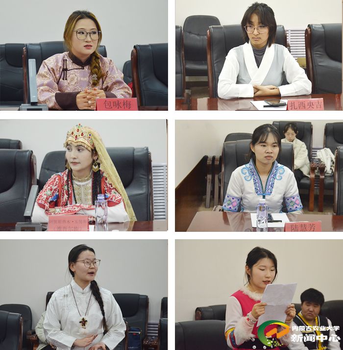 参观结束后,师生们开展了座谈交流,兽医学院党委书记吴玉红主持座谈会。座谈会上,兽医学院“石榴籽”民族团结示范班蒙古族学生代表包咏梅、藏族学生代表扎西央吉、维吾尔族学生代表阿依祖热木·玉努斯、壮族学生代表陆慧芳和鄂温克族学生代表雅妮等5位同学先后发言。她们结合参观感受和日常学习生活,就如何加强各民族交往交流交融,促进各民族共同团结奋斗、共同繁荣发展谈了自己的心得体会。“双带头人”党支部书记、兽医学院王瑞、刘芳等结合教育教学工作,分享了如何做好民族团结进步教育工作。示范班班长宣读了《民族团结从我做起倡议书》。