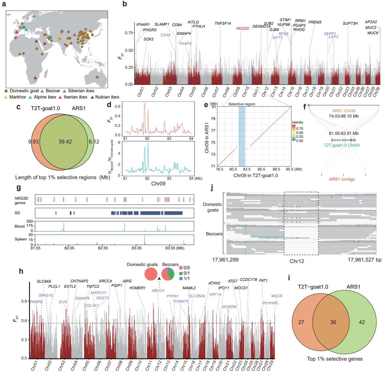 本研究探讨了家养山羊驯化过程中的选择特征中,集合了516份山羊个体的全基因组重测序数据,借助T2T-goat1.0所检测出的SNP和SV,研究鉴定出位于PURs内的与驯化紧密相关的基因,例如,NKG2D和ABCC4等。这一发现不仅加深了我们对山羊驯化机制的理解,也为后续的功能研究和遗传改良工作提供了宝贵线索。