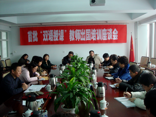 1月7日上午,校长李畅游、副校长侯先志、校长助理修长柏、中加中心、教务处和外事办公室的有关负责人一起为首批出国培训的“双语授课”教师举行了座谈会。座谈会上,各位领导代表学校给教师们下达了此次出国进修的任务,并对他们在出国学习、生活和语言方面提出了诚恳的建议。