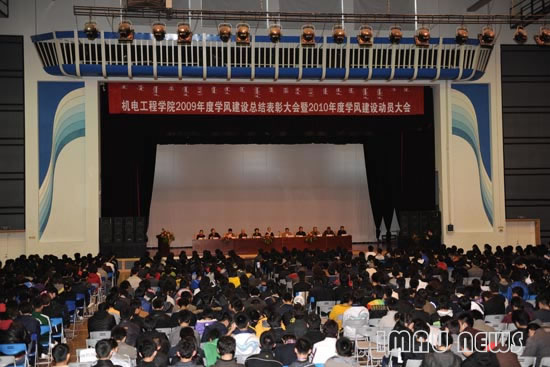 3月27日下午4点,机电工程学院2009年度学风建设总结表彰大会暨2010年度学风建设动员大会在校体育馆举行。校学生处和机电工程学院负责同志出席大会。大会由校长助理、机电工程学院院长王春光主持。