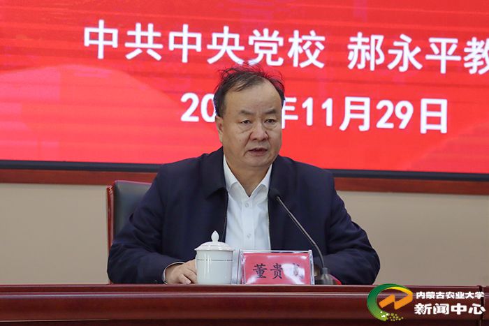 11月29日,学校在8号教研楼报告厅召开校党委理论学习中心组(扩大)学习会,会议邀请中共中央党校(国家行政学院)郝永平教授,作了主题为“以新时代伟大斗争精神推动高等教育改革发展”的专题辅导报告。校党委书记陈永胜,党委副书记、校长高聚林,副校长塔娜,党委委员、纪委书记褚亚申,党委委员、副校长陆海平、董同力嘎出席会议。党委副书记董贵成主持会议。