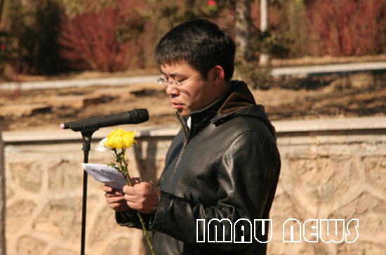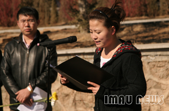 经管院学生代表为李莹擦拭了墓碑和头像,并浇灌了象征青春与永恒的常青树,希望同学们铭记李莹同学先进事迹,把李莹精神继续传承下去,为美好的明天而刻苦努力。内蒙古电视台记者对经济管理学院的老师和同学进行了采访。