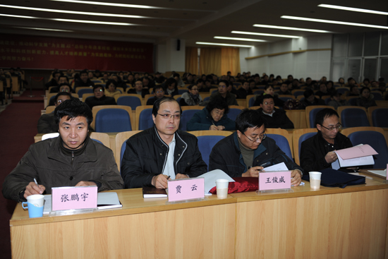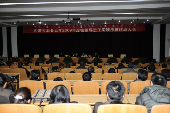 20日下午,在新教学楼报告厅举行2009年学校领导班子实绩考核述职大会,考核组全体成员和校领导云荣布扎木苏、李畅游、郑俊宝、高晓英、陈智、包赛音、王林和、侯先志、任强、李金泉、侯晨曦出席大会。大会由李畅游校长主持。
