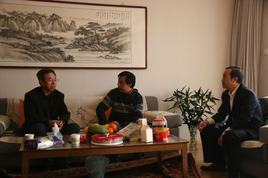 在张和平教授家里,满达副厅长首先向教授全家拜年,并亲切询问了张和平教授的教学科研情况,与他一同探讨了研究生培养和重点实验室建设等有关问题。