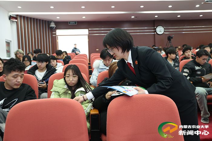 活动中,内蒙古自治区高级人民法院民事审判第五庭三级高级法官阿荣、学校马克思主义学院副教授阿茹罕和姜爱茹分别以“远离非法校园贷 守护校园安全”“立宪法权威,建设法治中国”“草原生态文明的法治之维”为题,为学生作了普法讲座。