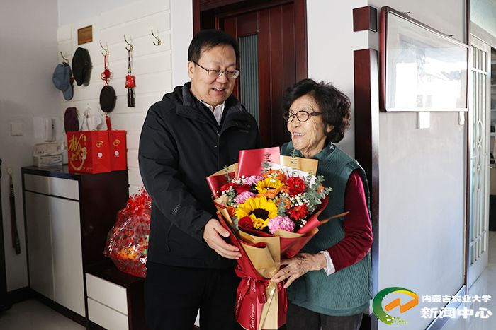 12月8日上午,校党委副书记、校长刘永斌走访慰问退休教师云锦凤老师,叮嘱她保重身体,继续为草种业发展和学校建设贡献智慧和力量。