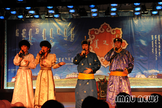 晚会共有19个节目,熔蒙古族声乐、器乐、服饰、舞蹈于一炉,全方位展现蒙古民族艺术的独特魅力。在曲调悠扬、节奏欢快的合唱《白马颂》中,晚会拉开了帷幕。小品《寻找明星》以演员生动有趣的表演和幽默诙谐的语言使在场的观众们笑声连连,掌声不断。一曲《根在蒙古》表现出蒙古族儿女对家乡、民族真挚的爱。歌手的深情演唱,触动了在场每一位观众的心。节目《服装展示》,秀出了蒙古族服装的风格与特色。蒙古族的服饰文化同蒙古族的历史一样悠久灿烂,是民族传统文化不可分割的重要组成部分。演员们手捧蓝色哈达,展现了蒙族人民的热情好客。此次晚会在节目设计上独具匠心,不仅给观众带来许多经典而熟悉的草原歌曲和草原舞蹈,独具蒙古民族特色的呼麦音乐更是晚会上的一大亮点,它运用特殊的声音技巧,一个人同时唱出两个声部,形成罕见的声部形态,获得无比美妙的声音效果。呼麦堪称蒙古族民间音乐之魂,带给同学们一种听觉享受。
