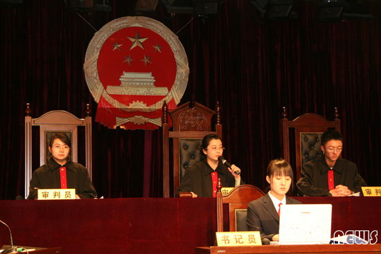 本届模拟法庭以“邱明宇入室抢劫杀人”一案进行审理,2006级法学系的同学们凭借过硬的专业知识和逼真的表演将庭审现场真实的反映在同学们面前,两个小时的“模拟法庭”活动使同学们切身感受到学习法律常识、运用法律武器的重要性。庭审过程中,主持人针对该案例应如何判决与现场观众互动,同学们踊跃发表自己的意见看法。