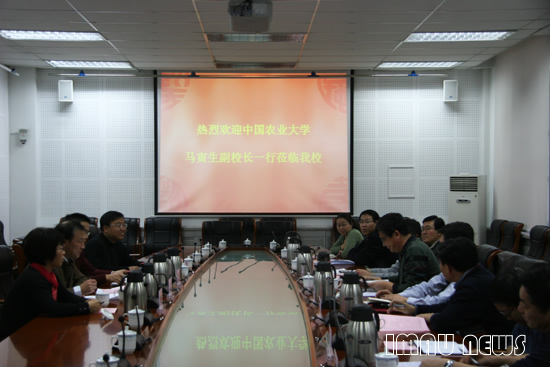 侯晨曦副校长对中国农业大学马寅生副校长一行表示欢迎。侯晨曦说,11月26日,教育部召开西部高校对口支援工作会议,中国农业大学党委书记瞿振元和KY开元李畅游校长就两校对口支援工作深入交换了意见。一周后,马寅生副校长一行又来到KY开元,体现了中国农业大学对于对口支援工作的高度重视。