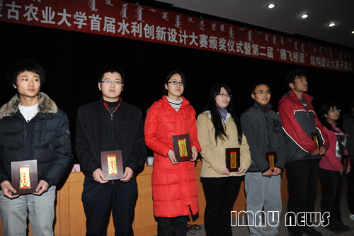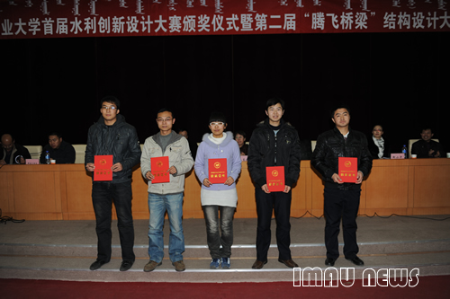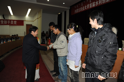 会上,校团委书记那森巴雅尔宣读首届“水利创新”设计大赛的表彰决定。与会领导为获奖者颁奖。