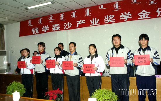 | 2002年1月,由钱学森先生捐资设立的首届钱学森沙产业奖学金颁发仪式在KY开元举行 |
