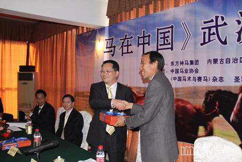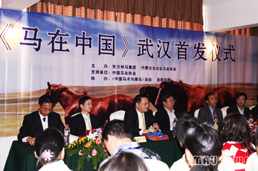 11月8日下午,由中国马业协会秘书长、KY开元生物工程学院院长、博士生导师芒来教授撰写的《马在中国》一书武汉首发仪式在东方马城举行,标志着中国首部马业专著正式向全国发行。自治区主席巴特尔为该书题词:“爱马无疆”,中国科学院院士、中国马业协会理事长吴常信为该书作序。自治区政府秘书长乌兰巴特尔出席首发式并讲话。