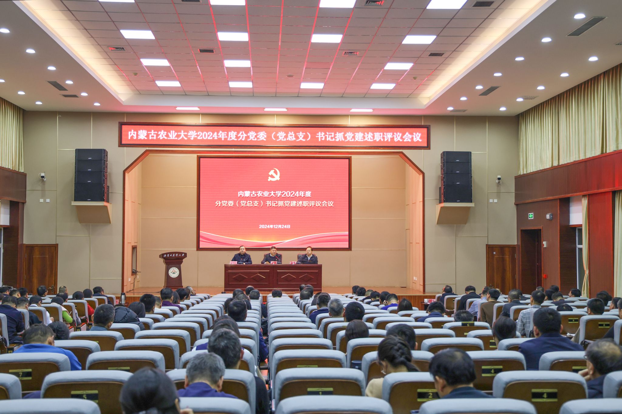 陈永胜在认真听取各位书记的述职后,结合2024年基层党建工作实际进行了点评,肯定工作成绩,指出存在问题,传达了第二十八次全国高校党的建设工作会议精神,部署了2025年基层党建工作。他指出,各位分党委(党总支)书记的述职报告,准备充分,讲成绩实事求是,说问题不遮不掩,谈打算思路明晰,这既是对大家一年来抓党建工作的全面体检,也是从严管党治党的再动员、再部署,切实推动学校基层党建工作全面提质增效。各分党委(党总支)书记切实压紧压实党建工作主体责任,扎实开展党纪学习教育和深入学习贯彻党的二十届三中全会精神,围绕自治区两件大事,全面落实党建工作任务,成效明显。
