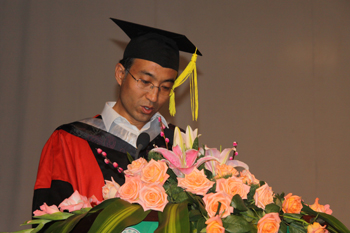 教师代表屈忠义和学生代表郭静在毕业典礼上发了言.
