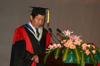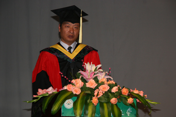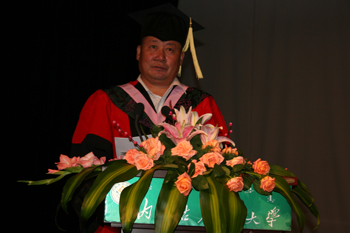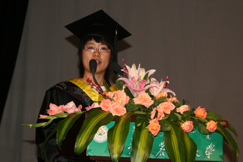 教师代表刘杰才和学生代表鲁丽花在毕业典礼上发了言。