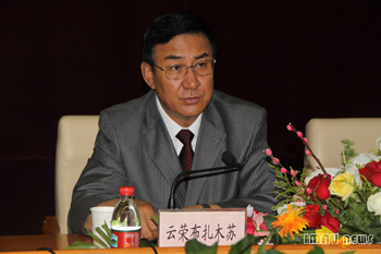 云荣布扎木苏指出,在肯定成绩的同时,我们也清醒地认识到,我们的工作同科学发展观的要求相比,同高等教育快速发展的形势相比,同广大人民群众和师生员工的愿望相比,仍然存在很大差距。归纳起来,主要是人才培养、学科建设、科学研究队伍建设、管理体制、党建思政方面。