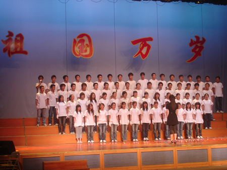 当记者问到参加合唱的同学在演唱过程中的感受时,他们说“站在台上唱歌的时候,我们浑身充满了力量,仿佛我们的歌声越洪亮,就越能体现我们对祖国的热爱,这种感觉让我们终身难忘。”的确,他们不是在用自己的喉咙歌唱,而是在用他们的爱国心歌唱。