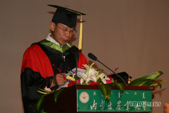 毕业典礼上,侯先志副校长为毕业生授予学位并讲话。与会领导为毕业生颁发了学历和学位证书。