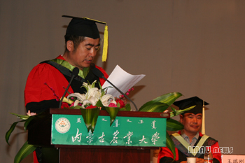 动物科学与医学学院党委书记额尔敦宣读学位授予决定。