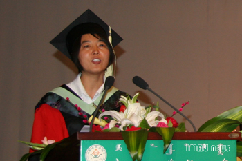 教师代表李国婧教授和学生代表在毕业典礼上发言。