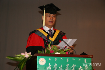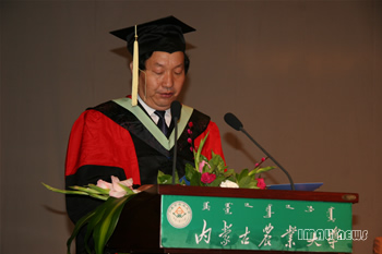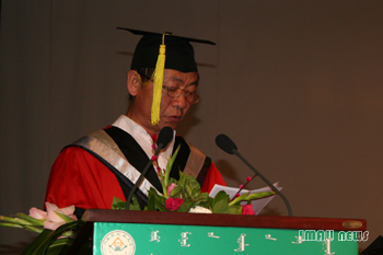 副校长王林和教授在毕业典礼上讲话,他说,你们作为80后的一代,你们身上有着80后特有的气质与活力,在你们中间涌现出了光明天使李莹等优秀的大学生,这种优秀的品质在你们心中传递,表现为一所学校的精神。几年来学校狠抓教学质量,牢牢抓住国家重点支援西部地区高校的机遇,不断改革、不断创新,在教育部组织的本科教学水平评估均评为优秀,其中也有你们的努力和奉献。今天,你们即将离开你们曾经拼搏和奋斗过的地方,希望你们牢记团结、求实、博学、创新的校训,继续努力,开创一个美好的明天!
