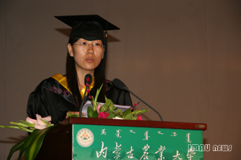 典礼上,学生代表吕国玲代表全体毕业生发言, 她说,四年前我们带着美好的憧憬走进这所学校,四年里我们不断拼搏,勇于探索。在老师的教导下一步步走来,用知识武装着自己,今天我们即将走出校门,步入人生新的旅程,在这里我代表所有毕业生们向母校、向我们敬爱的老师说声谢谢,希望母校的未来更美好。
