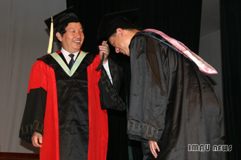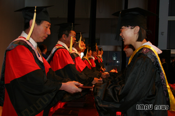 典礼在庄严的国歌声中拉开了序幕,国歌奏毕,校学位委员会委员靳烨教授宣布学位授予决定,并表彰了2009届优秀毕业生,到场领导为学士学位获得者授予学位,并为获奖者颁发了证书。