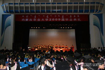 毕业典礼在师生齐唱的校歌声中结束。食品科学与工程学院、计算机与信息工程学院、理学院、林学院、人文社会科学学院2009届全体毕业生参加了典礼。