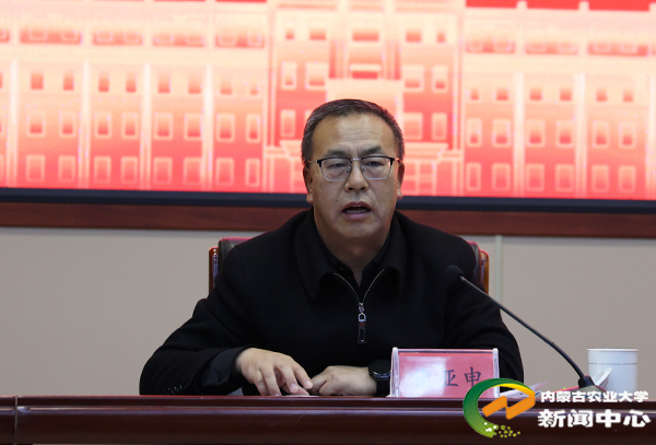校党委副书记董贵成,副校长塔娜,党委委员、副校长齐景伟、左合君、陆海平,副校长张超群,党委委员、职业技术学院党委书记韩瑞平、院长那森巴雅尔,以及全体处级干部参加会议。