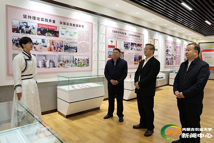 3月5日下午,佛山大学党委书记骆少明一行到校参观调研,校党委书记陈永胜、党委副书记董贵成陪同参观了校史展览馆、乳品生物技术与工程教育部重点实验室、草原野生动物馆、植物标本研究室等地,并开展了座谈交流。