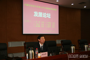 4月30日下午,学校发展论坛第三讲在图书馆书缘会议室举行。校党政领导郑俊宝、高晓英、包赛音、侯先志、任强、侯晨曦出席论坛。