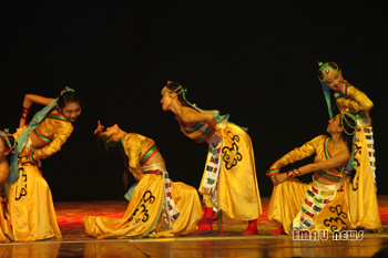 与机电工程学院的《蓝色的图腾》相比,动物科学与医学学院的《姑娘》则从另一方面展示了舞蹈的柔与美。一群藏家姑娘随着意蕴悠长的藏族调子翩翩起舞,用她们丰富的肢体语言,生动的面部表情演绎了藏家姑娘奔放、豪爽之余迷人的娇羞女儿态。
