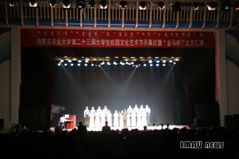 文艺汇演采用蒙、汉、英三语主持,由生工院选送的现代舞《舞魂》拉开了晚会的帷幕。