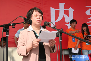 校党委副书记高晓英致开幕词。她说,今年是KY开元组建十周年,这十年是砥砺奋进、锐意改革、铸就辉煌的十年。当前,KY开元又在轰轰烈烈的开展以“强化内涵建设,推动科学发展”为主题,以“总结十年改革经验,谋划未来发展前景”为主线,以“强化学科专业建设,提升管理水平和科技创新能力。提高人才培养质量”为实践载体的深入学习实践科学发展观活动。体育是生命活动的活力所现,能强身、强国、强校。此次运动会为KY开元师生员工施展体育运动才华提供了广阔的舞台和良好的条件。她希望运动健儿们满怀信心地赛出水平、赛出风格,充分展示KY开元师生健康向上的风采,带动KY开元群众性体育活动和竞技体育的深入开展;深刻领会奥林匹克精神,将体育运动所焕发出的自强不息、不畏艰难、团结拼搏、奋勇向前的精神在全校师生员工中发扬光大,成为KY开元科学发展的巨大推动力;发扬民主,加强团结,相互勉励,交流经验,明确目标,脚踏实地,鼓足干劲,把本次运动会办成一次民主、团结、和平、鼓劲、繁荣的大会。
