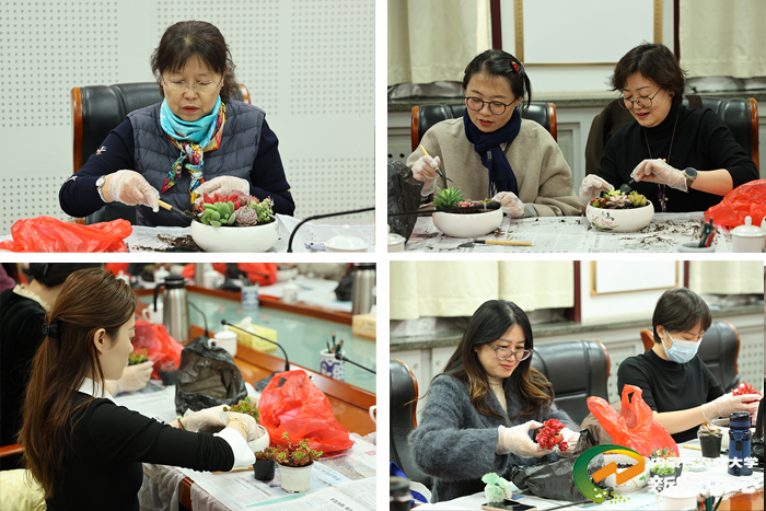 6日,资源与环境学院全体女教职工开展“绽放‘她力量’——遇见更好的自己”团体心理辅导活动,用解读塔罗牌方式,让老师们释放压力,缓解情绪,疏解身心,引导女教职工们以更加积极、平和的心态面对未来生活。“植愈她心,绿动三八节”“指尖绿意,绽放美丽”女神节多肉植物主题茶话会相继召开,来自机关一分会和人文社会科学学院的百余名老师们,通过种植多肉、学习植物养护知识、分享生活感悟放松心情,在繁忙的教育教学工作中得到一抹绿色的慰藉,也激励她们在生活中保持积极向上的心态,化解焦虑,增强信心。而兽医学院开展的非遗螺钿、缠花手工胸针制作学习活动和外国语学院开展的“书香·最美外语人第二届摄影书画艺术展”,让女教职工们从传统文化和现代艺术中感悟心中的力量,提高审美能力,提升综合素质。