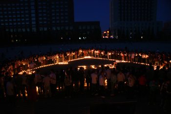纪念活动开始,七百余支红蜡相继点燃,观众围绕心形而站。现场所有学生为灾区逝去的人们默哀一分钟。《明天会更好》合唱开始了所有川渝学子的希望之旅,唱出了所有人对灾区人民最美好的祝福。