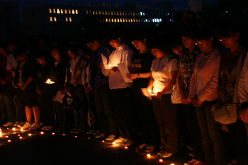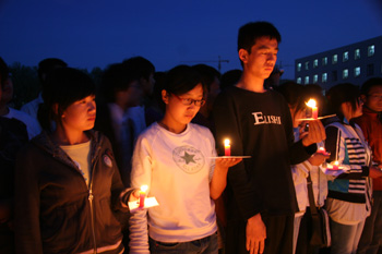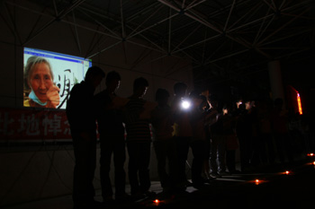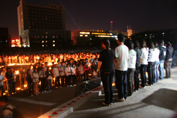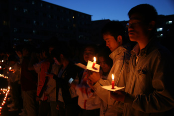 生命陨落,逝者悠悠;希望仍在,浴火重生。5月12日晚8点,由KY开元川渝学子发起的5.12地震一周年纪念活动在KY开元东区操场举行。来自内大、师大、工大的川渝籍学生和KY开元学生500多人参加了纪念活动。活动的主题为“此时此地悼念默哀犹尝胆,今生今世感恩生聚永自强”。