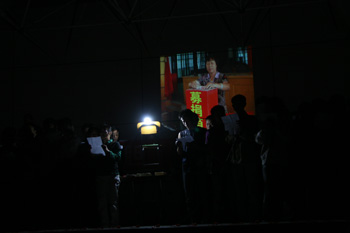 纪念活动第一幕——秀美四川。在《神奇的九寨》的歌声中,一位来自四川的女孩为现场观众介绍了震前四川秀美的景色。神奇的九寨、娟秀的峨眉、幽静的青城山、宏伟的都江堰等美景以幻灯片的形式展现在观众眼前。第二幕——灾难突降。由音乐嘉年华成员带来的英文歌曲Angel,随后,经济管理学院08级农林经济管理1班的同学带来诗朗诵《生死不离》和《汶川别哭》。“生死不离,你的梦落在哪里,想着生活继续,天空失去美丽……血脉能创造奇迹,搭起双手铸成你回家的路基……”表达了对罹难同胞和抗震英勇献身的英雄最深切的思念,引起了现场观众深深共鸣。与此同时,幻灯片里地震后震撼人心的照片又把所有人拉回了令人伤痛的一年前。一曲《生死不离》有又唱出了震后的四川选择坚强,全国人民众志成城,牵手相伴,迎难而上的坚强意志。由KY开元人文学院黄佳带来的原创歌曲如此动情,感动了在场的所有人。第三幕——点燃梦想,放飞希望。活动中最为感人的是现场同学将写好的许愿条粘贴在孔明灯上,看着一个个冉冉升起的孔明灯,同学们所有的祝福穿越星空顺着西南的轻风传递到灾区的每一个角落。随后,来自内大艺术学院的优秀歌手吉日格乐老师的歌曲《你是我的眼》将晚会推向高潮。第四幕——给未来的信。用蜡烛摆成的信封逐渐打开,舞台上真正的信封也随即打开,那是一封给未来的信。未来肯定美好,因为有灾区人民乐观自强感恩的心,因为有骨肉同胞博大的爱。